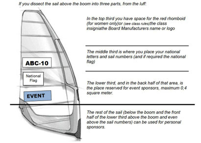 D: Die übrig bleibende Segelfläche unter der Gabel ist reserviert für persönliches Sponsoring (Werbereglement beachten).